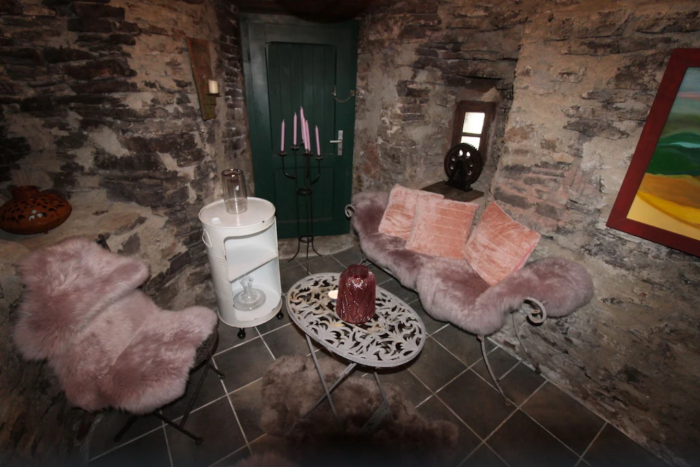 Neben der Hauptwohnung mit bewohnbarem Wehrturm und einer Kellerbar im unteren Wehrturm mit Brunnen, wo Sie gesellige Abende, Whiskytastings, Weinproben oder andere, kleine Feiern abhalten können, stehen insgesamt sechs Schlafzimmer im gesamten Gebäudekomplex mit Doppebetten für Sie bereit. Zwei Schlafzimmer sind auf Grund der urigen Grösse eher für eine Person, oder zwei Kinder geeignet.
